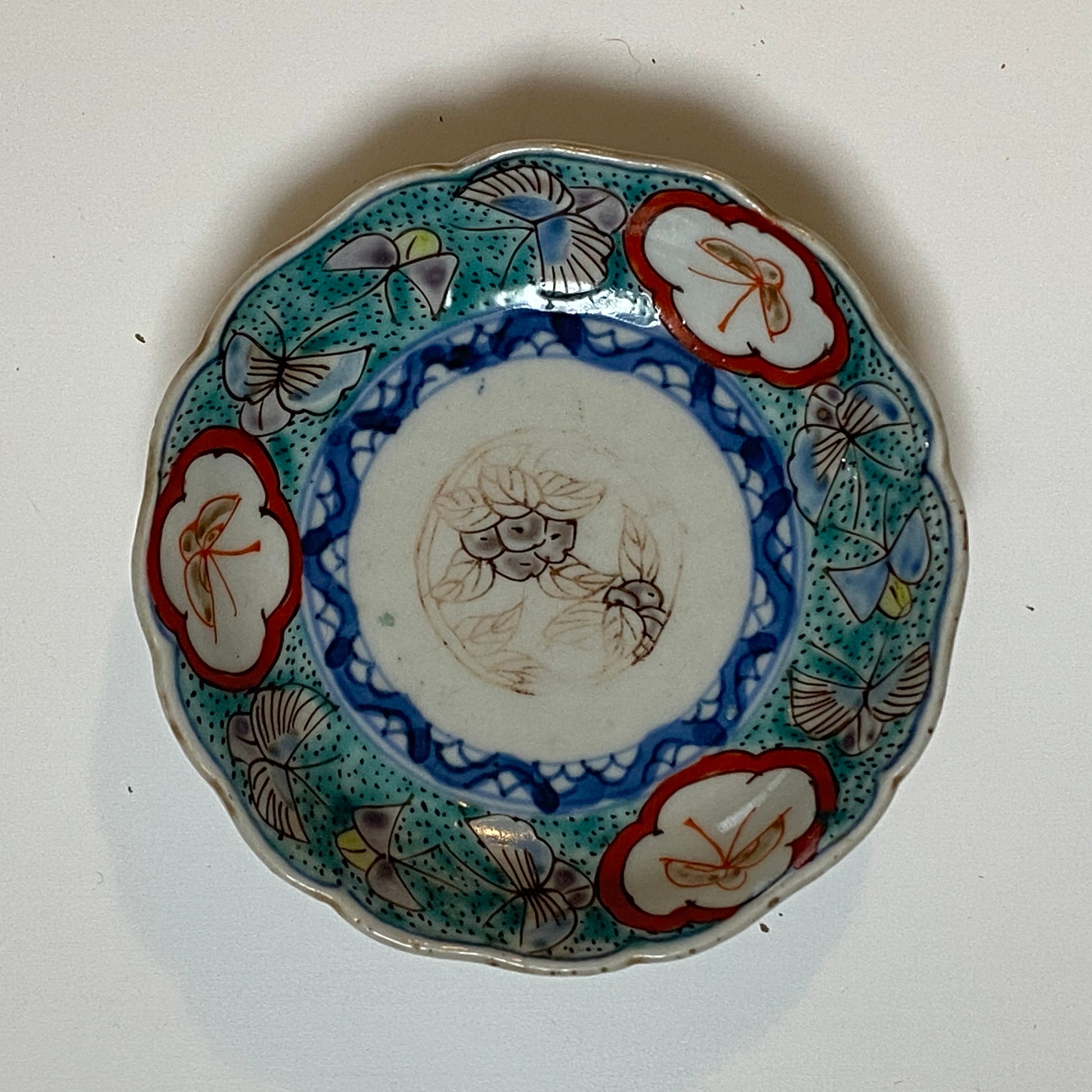 蝶舞うエメラルドグリーン豆皿