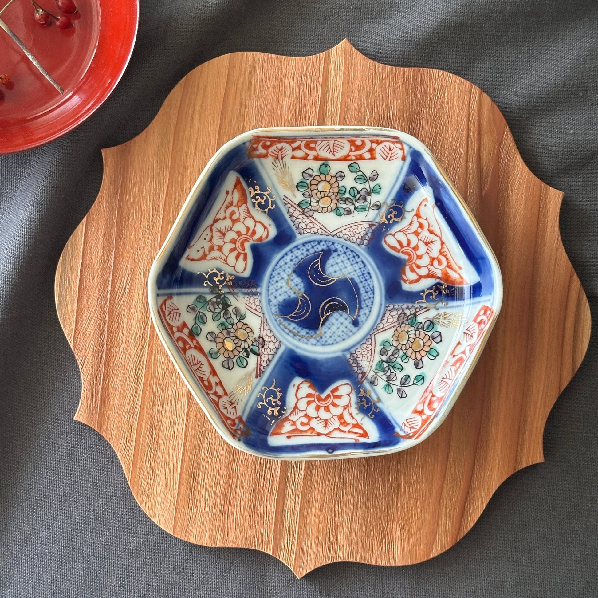 六角形のフォルムに、草花や幾何学模様がリズミカルに描かれてい器全体に躍動感が漂います。